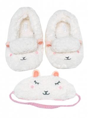 Bačkory dámské chlupaté + škraboška na spaní komplet