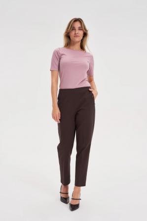 56 % BAVLNA, 42 % POLYESTER, 2 % ELASTAN Tyto hnědé cigaretové kalhoty kombinují nadčasovou eleganci s pohodlným střihem. Hladká, nevzorovaná látka zdůrazňuje všestrannost kalhot, zatímco ozdobné knoflíky dodávají charakter a jemnou originalitu. Pohodlný elastický pas zajišťuje celodenní pohodlí a praktické kapsy umožňují snadné uložení drobností. Mačkané kalhoty opticky zeštíhlují postavu, zatímco délka ke kotníkům vytváří štíhlejší vzhled. Měkká směs bavlny a strečové látky zajišťuje volnost pohybu a odolnost. Tyto olivově hnědé cigaretové kalhoty jsou ideální pro obchodní schůzky, do kanceláře, ale i pro elegantní výlety a rodinné oslavy. Skvěle se hodí k bílé košili, klasickému saku, lehkému svetru nebo módnímu topu. Perfektně se hodí k podpatkům i teniskám, takže si s nimi můžete vytvořit řadu stylových outfitů pro různé příležitosti.
