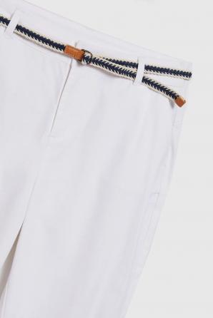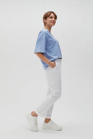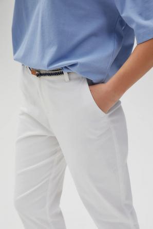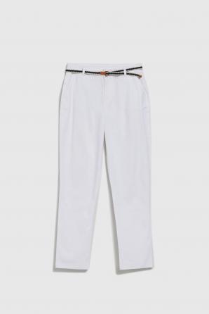 98% BAVLNA, 2% ELASTAN Bílé dámské kalhoty jsou perfektní volbou pro každou ženu, která si cení pohodlí a stylu. Jsou vyrobeny z vysoce kvalitní bavlny, poskytují pohodlné nošení a skvěle padnou. Navíc mají praktické kapsy, ozdobný pásek a zapínání na zip a knoflík. Kalhoty budou perfektní volbou pro mnoho různých příležitostí, jak neformálních, tak i formálnějších. Skvěle se budou hodit k bílé košili a vysokým podpatkům na pracovní schůzku nebo k volnému tričku a teniskám na procházku po městě. Díky jejich univerzálnímu designu se dají sladit s mnoha styly, dodají eleganci nebo ležérnost podle vašich potřeb.