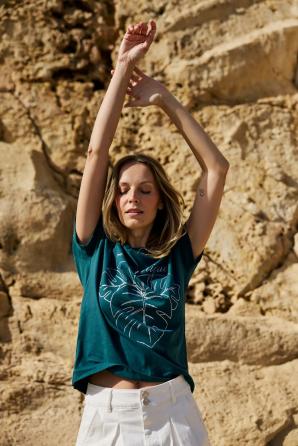 100% BAVLNA Tato halenka ve svěžím zeleném odstínu je ideální pro ženy, které si každý den cení pohodlí a volnosti pohybu. Měkká, přírodní bavlna příjemně obepíná pokožku a zajišťuje pohodlí i během hektické dny. Volný střih a krátké rukávy halenku krásně splývají, zatímco módní potisk dodává halence nádech lehkosti a charakteru. Kulatý výstřih zdůrazňuje ženský styl a zároveň zůstává decentní a všestranný. Tato halenka je ideální do práce, na procházku, na spontánní setkání nebo na večer s přáteli. V kombinaci s elegantními kalhotami nebo sukní získává stylový nádech a v kombinaci s džínami a oblíbeným sakem se stává neocenitelným základem pro každodenní styling. Pohodlná a stylová – ideální pro každou příležitost, umožní vám cítit se pohodlně, aniž byste museli obětovat módní vzhled.