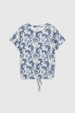 Bílá halenka s modrým vzorem