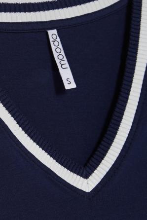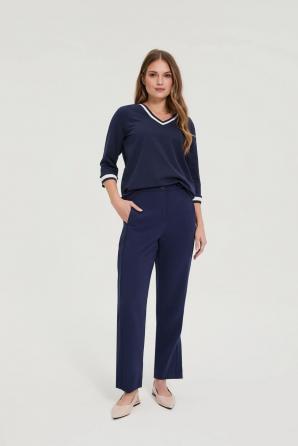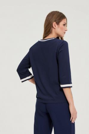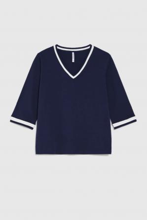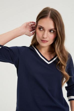 Tmavě modrá bavlněná halenka s výstřihem do V