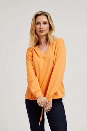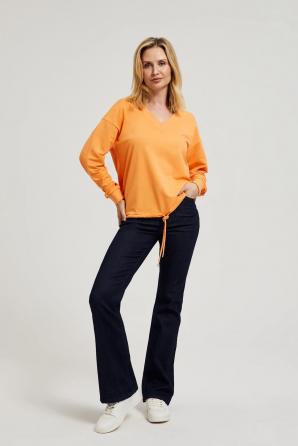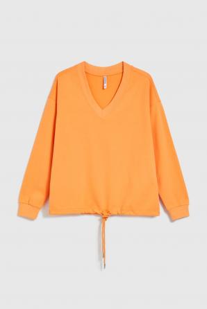 Jednoduchá mikina s výstřihem do V a zavazováním, oranžová