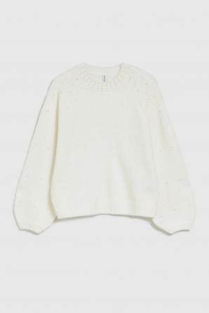 63% AKRYL, 31% POLYESTER, 6% VLNA Elegantní krémový svetr je perfektní volbou pro chladnější dny. Vyrobeno z akrylu, hladké, bez vzoru, zajišťující pohodlí při nošení. Zdobené klasickými perlami, které mu dodávají jedinečný charakter. Rozšířené rukávy dodávají lehkost a eleganci. Tento svetr je ideální pro mnoho příležitostí, dokonale se hodí k elegantní sukni i džínám. Dokonale se hodí jak k vysokým podpatkům, tak teniskám, což vám umožní vytvářet různé styly. Mimořádně univerzální a nadčasový bude dokonalým doplňkem dámského šatníku