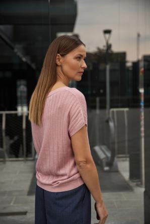 Růžový svetr s krátkým rukávem