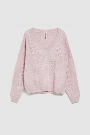 RŮŽOVÝ SVETR S VÝSTŘIHEM DO V