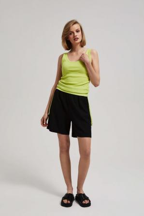 Dámský top. Kulatý výstřih. Široká ramínka. Vyrobeno z žebrovaného materiálu. Na bocích lemy a šňůrky. Vypasovaný střih. skvěle se hodí ke šortkám a kalhotám. Ideální na léto.