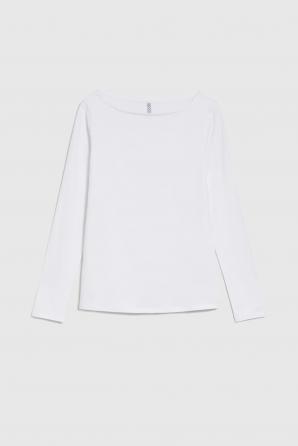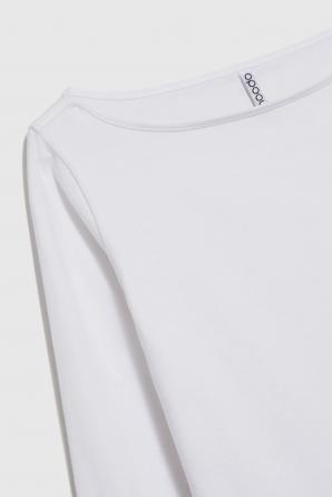 95% BAVLNA, 5% ELASTAN Tato přiléhavá halenka v bílé barvě je synonymem elegance a všestrannosti v dámském šatníku. Hladká struktura látky a dlouhé rukávy zajišťují pohodlí a stylový každodenní vzhled. Výstřih bateau decentně zdůrazňuje ramena a dodává celému vzhledu nádech lehkosti. Přírodní bavlna činí halenku prodyšnou, měkkou a příjemnou na dotek, což zajišťuje pohodlí. Perfektně se hodí k elegantním látkovým kalhotám, pouzdrové sukni a klasickým džínům. Skvěle se hodí jako základ pod sako nebo kardigan a vytváří tak vzhled vhodný pro každé roční období.