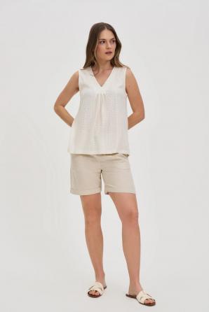 Modelka na obrázku: výška - 173 cm, rozměry 82/63/92, velikost v Moodo - horní část-XS, spodní část-S