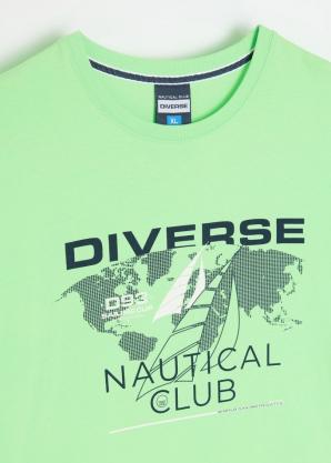 Tričko z přírodní, prodyšné bavlny - Běžný střih zajišťující volnost a pohodlí pohybu, - Klasický kulatý výstřih s jemnou žebrovanou manžetou, - Krátké rukávy s univerzálním střihem, - Velký potisk s motivem plachetnice a nápisem DIVERSE NAUTICAL CLUB na přední straně.