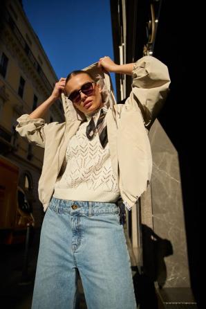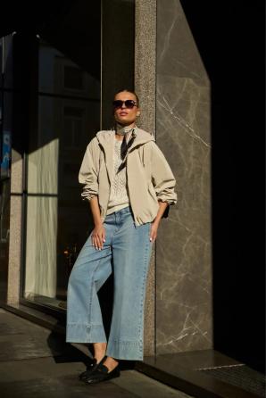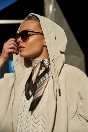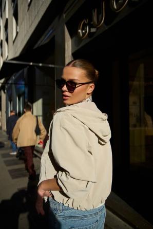 Tenká béžová bunda s kapucí
