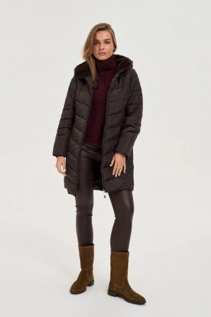 100% POLYESTER, PODŠÍVKA: 100% POLYESTER Tato hnědá prošívaná zimní bunda je perfektní volbou pro chladné dny. Její hladká struktura a elegantní barva ji činí stylovou a nadčasovou. Izolace, měkká podšívka a praktická kapuce účinně chrání před chladem a větrem. Dlouhé rukávy, délka do poloviny stehen a praktický zip zajišťují pohodlí při každodenních činnostech. Kapsy umožňují pohodlné uložení drobností, zatímco promyšlené prošívání zdůrazňuje módní charakter bundy. Vnější materiál je odolný polyester, díky čemuž je bunda odolná proti vlhkosti a snadno se udržuje. Ideální volba pro zimní procházky, nakupování nebo výlety mimo město. Perfektně se hodí k džínám, teplým legínám, kotníkovým botám a klasickým svetrům. Hodí se jak k městským outfitům, tak k každodenním sportovním outfitům.