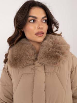 Prošívaná zimní bunda s kožešinou v barvě velbloudí