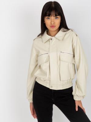 Světle béžová krátká bunda z ekokůže s podšívkou
