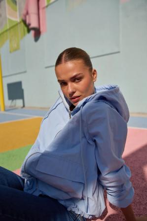 100% POLYAMID Tato dámská bunda ve světle modrém odstínu kombinuje ležérní pohodlí s každodenní funkčností. Hladká, matná tkanina s nádechem polyamidu zajišťuje lehké pohodlí, zatímco měkká podšívka zvyšuje komfort i v chladnějších dnech. Praktická kapuce a nakládané kapsy zdůrazňují každodenní vzhled bundy a poskytují pohodlné uložení drobností. Jednoduchý, oversized střih s raglánovými rukávy perfektně padne, umožňuje volnost pohybu a vyjadřuje moderní městský styl. Tato bunda je ideální na dojíždění do práce, procházky po městě nebo setkání s přáteli. Skvěle se hodí k džínům, volným kalhotám nebo ležérní sukni a teniskám. Minimalistický design v módní barvě doplňuje univerzální styling a umožňuje vám vytvořit pohodlný, ženský každodenní vzhled. Je to nezbytný kousek v šatníku každé aktivní ženy, která si cení pohodlí a svobody, aniž by obětovala styl.