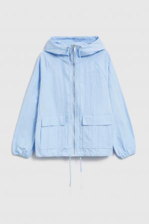 Světle modrá bunda s kapucí