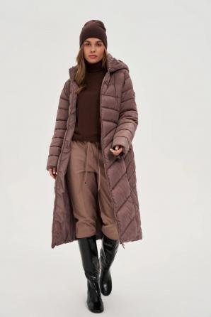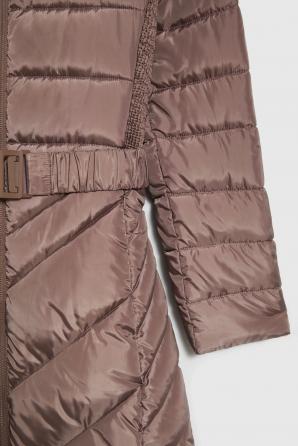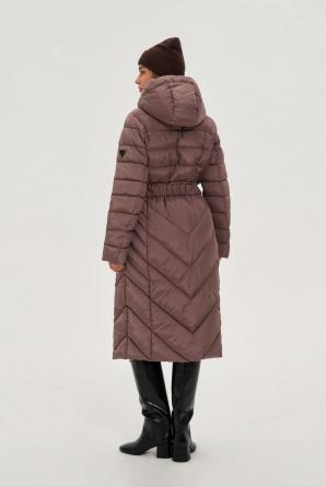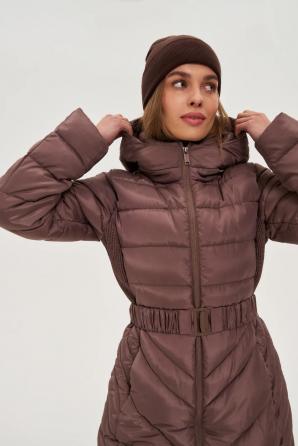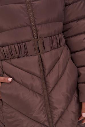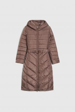 Hnědá dlouhá zimní bunda s páskem