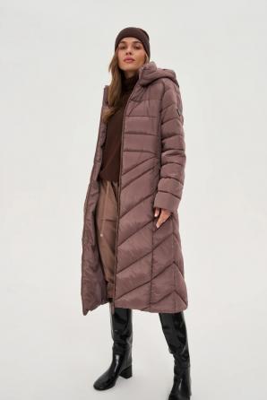 100% POLYESTER, PODŠÍVKA: 100% POLYESTER. Tato prošívaná zimní bunda v odstínech hnědé se vyznačuje hladkou strukturou a elegantním, minimalistickým designem. Pečlivě vyrobené prošívání a výrazné prošívání dodávají oděvu lehkou siluetu a zároveň zdůrazňují moderní charakter. Funkční kapuce poskytuje praktickou ochranu před chladem a větrem, zatímco zavazovací pásek decentně tvaruje pas a zajišťuje požadovaný střih. Dlouhé rukávy a střih po kolena účinně chrání před chladem. Zip zajišťuje pohodlné a rychlé zapínání, zatímco praktické kapsy umožňují uložení drobností. Bunda se vyznačuje příjemnou izolací na dotek, podšívkou a vnější vrstvou z odolného polyesteru. Ideální volba pro zimní procházky, každodenní výlety do práce i víkendové pobyty ve městě. Perfektně se hodí ke klasickým džínům, svetru a kotníkovým botám, ale i k pleteným šatům a kozačkám a vytváří tak stylové a ženské outfity pro chladnější dny.