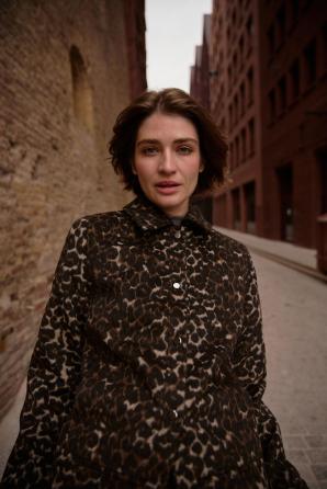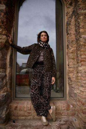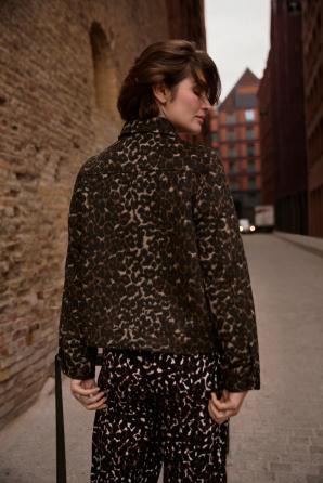 Hnědá bunda s leopardím potiskem
