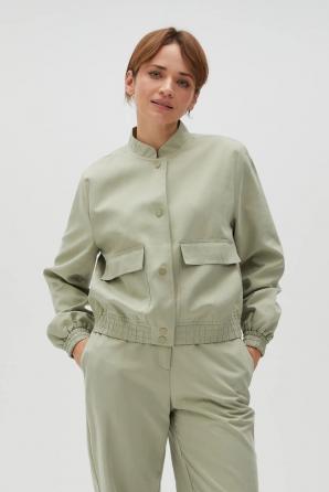 VNĚJŠÍ VRSTVA: 91% POLYESTER 9% POLYAMID POTAH: 100% POLYESTER Dámská bunda je perfektní volbou pro chladnější dny. Z hladkého polyesteru, jednořadé, podšité, s gumou ve spodní části a na manžetách. Praktické našité kapsy dodávají charakter, zatímco knoflíky a stojáček mu dodávají elegantní vzhled. Bunda je ideální pro každodenní nošení, do práce nebo na setkání s přáteli. Dá se nosit jak k elegantním kalhotám, tak k džínám. Skvěle se hodí i k šatům. Díky své univerzální olivové barvě se hodí k mnoha stylům. Ideální volba pro ženy, které ocení pohodlí a styl.