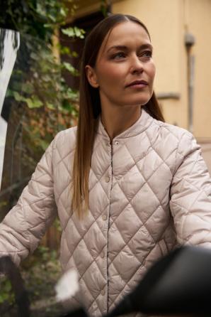 Krátká prošívaná světle béžová bunda - OBOUSTRANNÁ