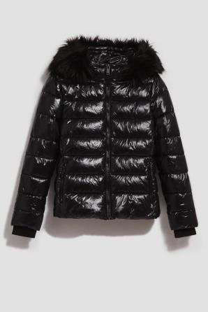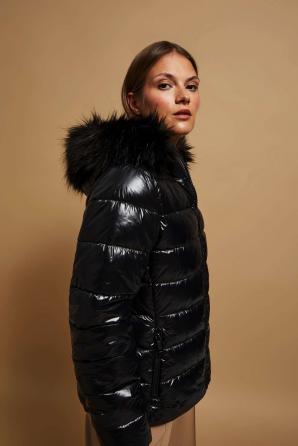 PROŠÍVANÁ BUNDA S KOŽEŠINOVOU KAPUCÍ