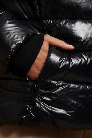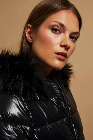 PROŠÍVANÁ BUNDA S KOŽEŠINOVOU KAPUCÍ