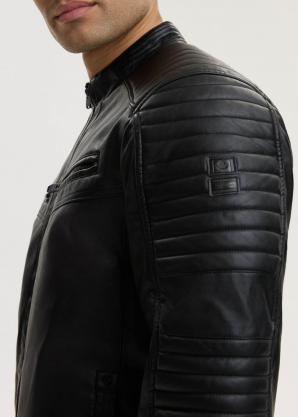 Pánská bunda z umělé kůže - klasický střih, - zapínání na zip, - nízký stojáček, - kapsy, - skvrnitá textura pro matný povrch. Tato všestranná bunda dokonale doplní městský styl a poskytne ochranu před chladnějšími večery.