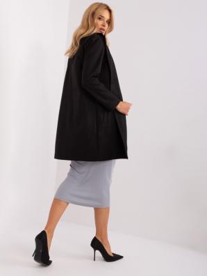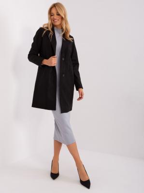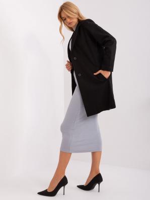 Černý krátký přechodný kabát s knoflíky a kapsami; s podšívkou