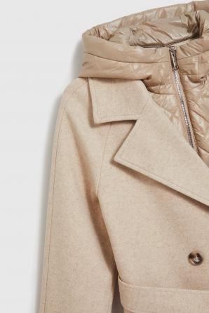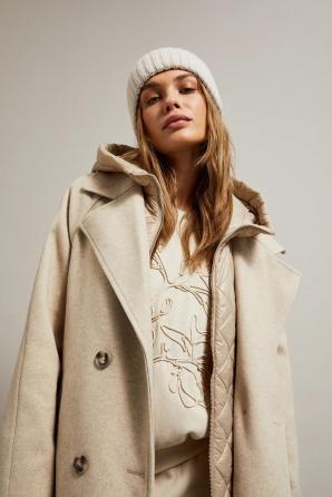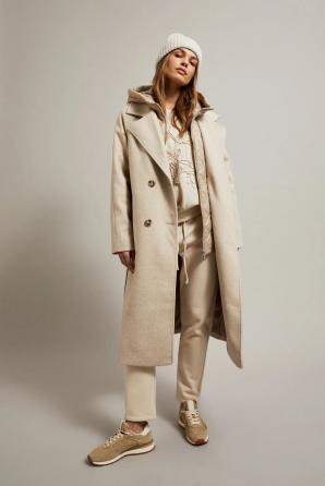 MATERIÁL 1: 90% POLYESTER, 10% VISKÓZA, MATERIÁL 2: 100% POLYAMID Stylová dámská béžová bunda je perfektním doplňkem každého šatníku. Díky hladkému materiálu působí elegantně a nadčasově. Bunda má praktické kapsy a límec, který jí dodává jedinečné kouzlo. Dvouřadé provedení s klopami a odepínatelnou kapucí ji umožňuje přizpůsobit různým příležitostem. Má také pásek, který zvýrazňuje pas. Bunda je vybavena dlouhými rukávy a zapínáním na zip a knoflíky, díky čemuž se pohodlně nosí. Navíc jeho délka sahá do poloviny lýtek, díky čemuž je ideální pro chladnější dny. Dámská bunda je ideální pro mnoho různých příležitostí, od každodenních procházek až po elegantní výlety. Dá se kombinovat s džínami a teniskami, stejně jako s elegantní sukní a kotníčkovými botami na vysokém podpatku. Je to všestranný kus oblečení, který dodá styl každému outfitu.
