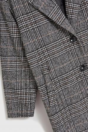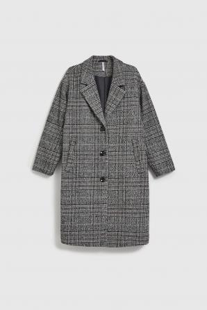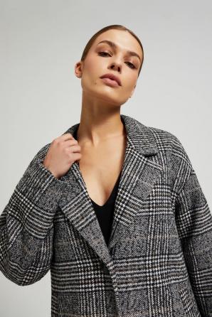 Elegantní kostkovaný kabát v odstínech šedé a grafitové je perfektní volbou pro chladnější dny. Vyrobeno z vysoce kvalitního materiálu, který zajišťuje teplo a pohodlí. Jednořadý model s klopami a ozdobnými knoflíky, kapsami a límečkem. Zateplené podšívkou, ideální na podzimní procházky. Ideální pro mnoho příležitostí, jak každý den, tak pro setkání s přáteli. Skvěle se hodí k džínům a teniskám, stejně jako k elegantní sukni a vysokým podpatkům. Díky svému univerzálnímu designu bude dokonalým doplňkem každého dámského šatníku.