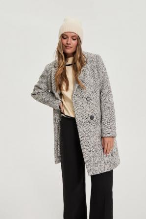71% POLYESTER 7% VISKÓZA 12% AKRYL 5% POLYAMID 3% BAVLNA 2% VLNA, PODŠÍVKA: 100% POLYESTER Tento šedý kabát s motivem rybí kosti je synonymem pro nadčasový styl a moderní eleganci. Dvouřadý střih s klasickým límcem a výraznými knoflíky zdůrazňuje jeho módní charakter, zatímco délka do poloviny stehen zajišťuje pohodlí v chladnějších dnech. Praktické kapsy umožňují uschovat si nezbytnosti, zatímco dlouhé rukávy a podšívka zajišťují tepelný komfort. Odolný polyesterový svrchní materiál zaručuje odolnost při každodenním nošení, zatímco pečlivě vybraná podšívka zvyšuje pohodlí. Perfektní volba do práce, na schůzky s přáteli nebo elegantní oslavy v přechodném období.