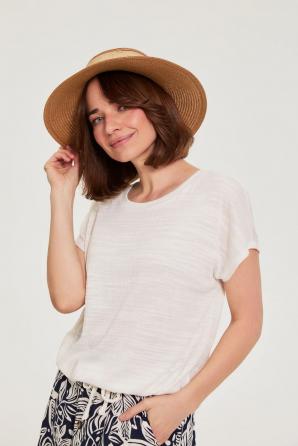 100% PAPÍR Tento slaměný klobouk v odstínech béžové a hnědé je ideální pro ženy, které si cení přirozenosti a každodenního pohodlí. Hladká a lehká struktura papírových vláken obepíná hlavu a zajišťuje prodyšnost i v nejteplejších dnech. Jemná ozdobná stuha dodává klobouku decentní, ženský nádech a zdůrazňuje styl bez zbytečné okázalosti. Lehká konstrukce zajišťuje, že klobouk nepůsobí stísněně ani nepřekáží v každodenním životě. Ideální volba na procházku městem, víkendový výlet, práci venku nebo setkání s přáteli v kavárně. Tento slaměný klobouk vypadá skvěle s lněnými šaty, klasickými džínami a bílou košilí, ale i s lehkou sukní nebo sakem. Doplňuje ležérní i romantický styl a každá stylová žena se v něm bude cítit pohodlně a módně v každé situaci. Tento nezbytný kousek kombinuje pohodlí, funkčnost a módní design v jarním/letním šatníku.