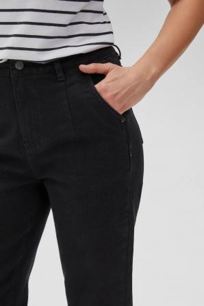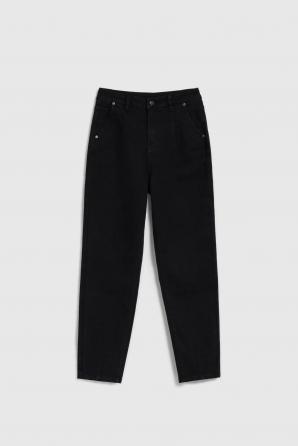 70% BAVLNA, 28% POLYESTER, 2% ELASTAN Dámské černé džíny jsou perfektní volbou pro každou ženu, která si cení pohodlí a stylu. Vyrobeny z vysoce kvalitní bavlny, zajišťují komfort nošení po celý den. Model mom fit se dokonale přizpůsobí postavě, zdůrazní přednosti postavy. Díky dlouhým nohavicím a střednímu pasu vypadají džíny velmi elegantně. Zip navíc usnadňuje jejich oblékání a svlékání. Tyto džíny se hodí k mnoha různým příležitostem – jak na setkání s přáteli, tak na formálnější události. Skvěle se hodí k různým oděvům, jako je košile, svetr nebo tričko. Díky své univerzálnosti můžete vytvořit mnoho různých stylů, přizpůsobených individuálním preferencím.