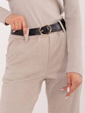 Béžové kalhoty s páskem v délce 7/8 se vzorem rybí kost