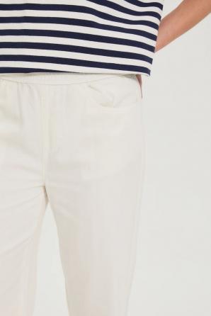 100% BAVLNA Dámské ecru džíny jsou ideální pro ženy, které si cení pohodlí a ležérního stylu každý den. Hladká a měkká bavlna zajišťuje celodenní pohodlí, zatímco elastický pas se jemně přizpůsobí postavě. Módní široký střih opticky zeštíhluje nohy, zatímco delší nohavice a klasický zip zdůrazňují moderní charakter výrobku. Minimalistický, nevzorovaný design doplňuje různé outfity a nabízí všestrannost a svobodu výběru. Tyto džíny jsou ideální do práce, na schůzky s přáteli nebo na procházky po městě. Ideální k kombinaci s lehkou košilí, jednoduchým tričkem nebo přiléhavým sakem pro elegantní nádech. Skvěle vypadají s vašimi oblíbenými teniskami nebo kotníkovými botami. Jejich ležérní styl s nádechem ženské lehkosti dělá z těchto džínů nezbytnost v šatníku každé moderní ženy, která si cení pohodlí, stylu a praktických řešení pro každodenní nošení.