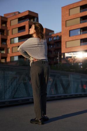 75% POLYESTER, 20% VISKÓZA, 2% ELASTAN, 1,5% POLYAMID, 1,5% METALICKÁ NIT. Tyto grafitové kalhoty s rybí kostí pro ženy jsou synonymem moderní elegance a každodenního pohodlí. Klasický záhyb a úzký cigaretový střih krásně zdůrazňují siluetu, zatímco praktické kapsy dodávají funkčnost. Dlouhé nohavice se perfektně hodí jak do kanceláře, tak do volného času. Zapínání na zip a knoflíky zajišťuje celodenní pohodlí. Materiál kombinuje odolný polyester s látkami, které zajišťují pohodlí a prodyšnost. Ideální volba pro obchodní schůzky, rodinné setkání nebo výlety s přáteli. Perfektně se hodí k bílé košili, saku, svetru nebo klasickému tričku. Dobře se hodí k jehlovým podpatkům, mokasínům nebo teniskám a vytvářejí tak outfity pro různé příležitosti. Grafitové kalhoty s rybí kostí jsou nezbytností v šatníku každé ženy, která hledá kombinaci stylu a pohodlí.