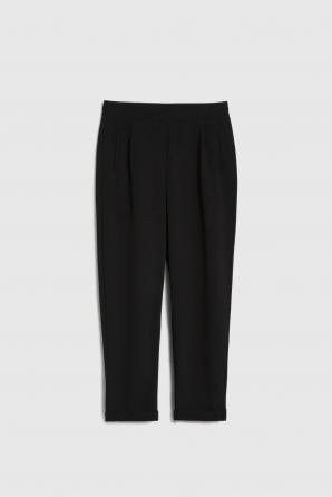 95% POLYESTER, 5% ELASTAN. Tyto černé, hladké dámské kalhoty s rovným střihem jsou perfektní volbou pro ty, kteří si cení pohodlí a nadčasového stylu. Elastický pas zajišťuje pohodlí a perfektní střih, zatímco decentní záševky zdůrazňují siluetu. Praktické kapsy dodávají funkčnost a umožňují uložení drobností. Dlouhé nohavice a středně vysoký pas zeštíhlují nohavice a dodávají jim elegantní vzhled. Materiál je odolný a snadno udržovatelný polyester, který zajišťuje pohodlí při každodenním nošení. Ideální pro každodenní práci, obchodní schůzky nebo rodinné setkání. Tyto kalhoty se dobře hodí ke klasické košili, volnému tričku, saku nebo svetru. Hodí se k elegantním podpatkům, teniskám nebo balerínkám, takže jsou všestranným doplňkem jakéhokoli outfitu.