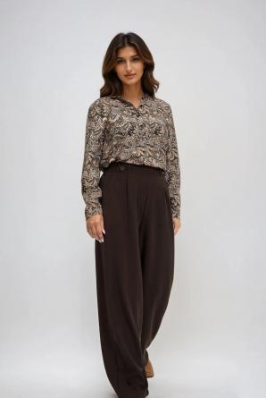 Elegantní kalhoty s širokými nohavicemi v hnědé barvě
