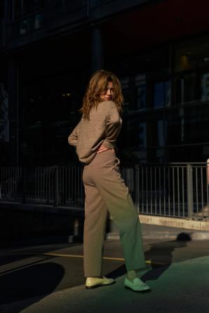 Hnědé kalhoty se širokými nohavicemi