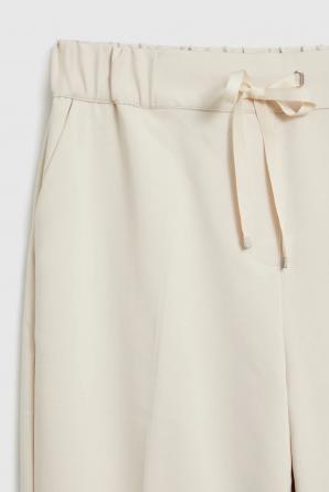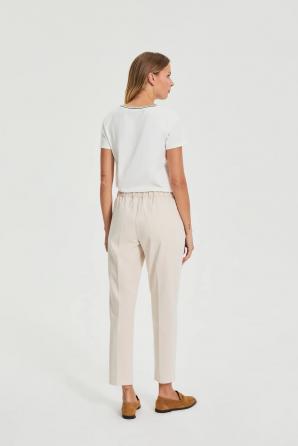 Béžové kalhoty s puky, s šikmými kapsami a v pase do gumy