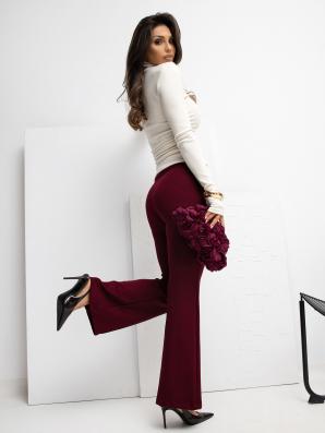 Vínové rozšířené kalhoty teplákového typu bez zapínání, s vysokým pasem a