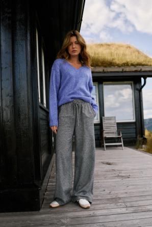 Šedé bavlněné kalhoty se širokými nohavicemi