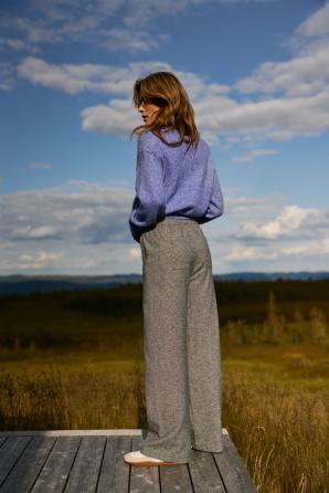 Šedé bavlněné kalhoty se širokými nohavicemi