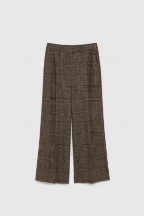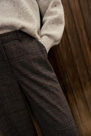 88 % POLYESTER, 10 % VISKÓZA, 2 % ELASTAN. Tyto hnědé kostkované kalhoty s rovným střihem a širokými nohavicemi jsou ideální pro ženy, které si cení pohodlí a nadčasového stylu. Praktické kapsy a zip usnadňují každodenní nošení, zatímco délka ke kotníkům opticky prodlužuje postavu. Materiál s vysokým obsahem polyesteru zajišťuje snadnou údržbu a celodenní pohodlí. Jsou ideální pro obchodní schůzky, výlety do města i neformální příležitosti a skvěle se hodí ke klasické bílé košili, elegantnímu topu nebo svetru a kotníkovým nebo jehlovým botám. Tyto stylové dámské kostkované kalhoty jsou ideální jak do práce, tak i na víkendové procházky.