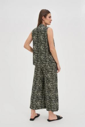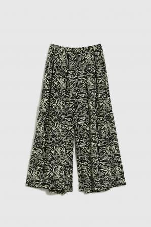 100% VISKÓZA Černé culottes 7/8 délky přitahují pozornost moderním střihem se širokými nohavicemi a vysokým pasem, zdůrazňují postavu a poskytují pohodlí při každodenním nošení. Elastická guma v pase umožňuje perfektní padnutí a praktické kapsy dodávají funkčnost a styl. Model je ideální na procházky po městě nebo víkendové výlety. Perfektně se hodí k elegantní košili a přiléhavému topu. Skvělou dvojici vytvoří pohodlné tenisky nebo sandály, které vám umožní vytvořit módní styly pro různé příležitosti.