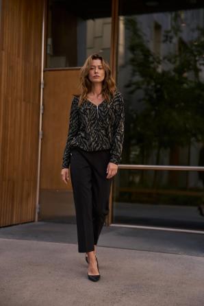 56 % BAVLNA, 42 % POLYESTER, 2 % ELASTAN Tyto černé cigaretové kalhoty kombinují nadčasovou eleganci s pohodlným střihem. Hladká, nevzorovaná látka zdůrazňuje všestrannost kalhot, zatímco ozdobné knoflíky dodávají charakter a jemnou originalitu. Pohodlný elastický pas zajišťuje celodenní pohodlí a praktické kapsy umožňují snadné uložení drobností. Mačkané kalhoty opticky zeštíhlují postavu, zatímco délka ke kotníkům vytváří štíhlejší vzhled. Měkká směs bavlny a strečové látky zajišťuje volnost pohybu a odolnost. Tyto olivově hnědé cigaretové kalhoty jsou ideální pro obchodní schůzky, do kanceláře, ale i pro elegantní výlety a rodinné oslavy. Skvěle se hodí k bílé košili, klasickému saku, lehkému svetru nebo módnímu topu. Perfektně se hodí k podpatkům i teniskám, takže si s nimi můžete vytvořit řadu stylových outfitů pro různé příležitosti.