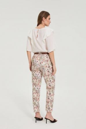 Vzorované béžové kalhoty