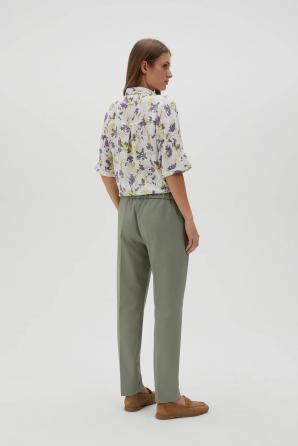 Olivové kalhoty s rovnými nohavicemi