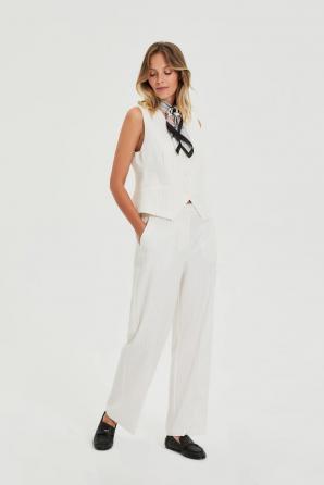 Bílé kostýmové kalhoty s jemným proužkem
